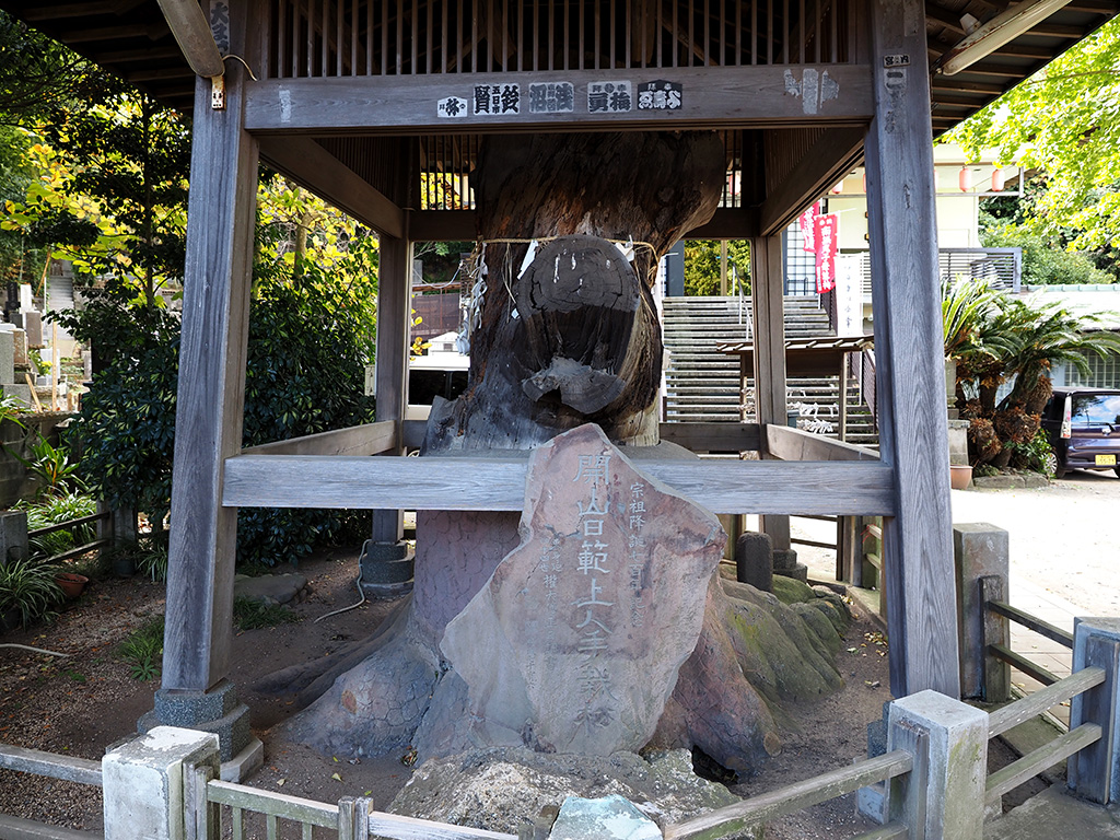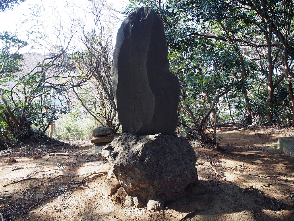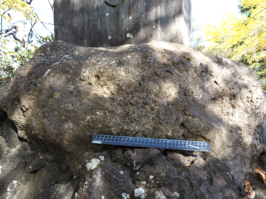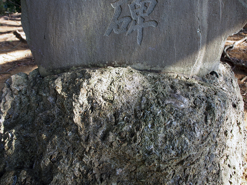開山日範上人手栽松碑の初声層化石密集層台座石 TOP