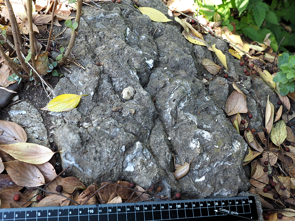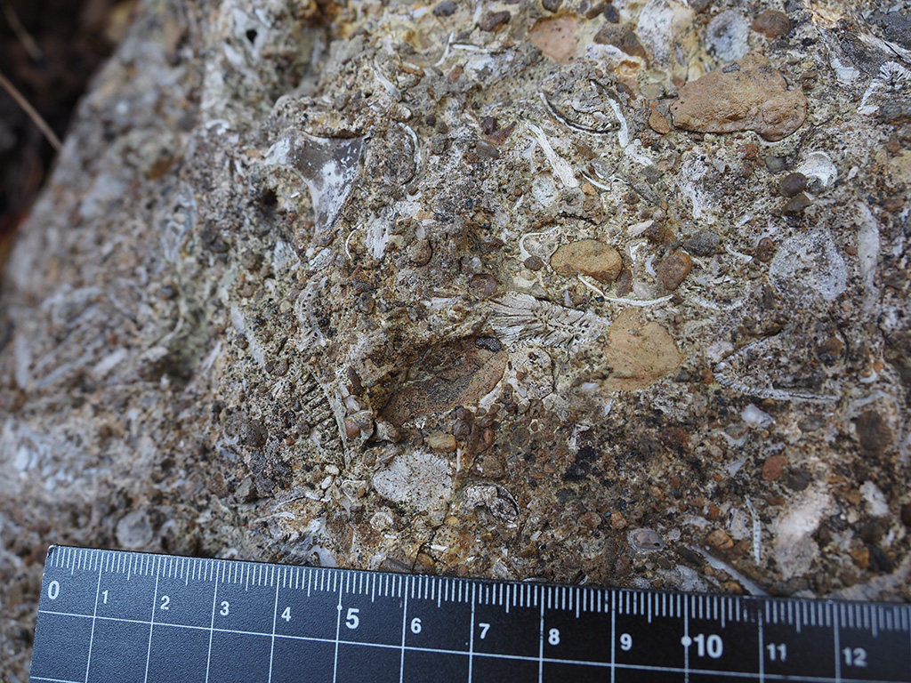 宮田貞明館址碑脇の初声層化石密集層岩塊 TOP