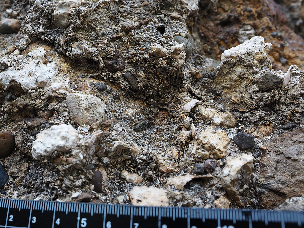 初声層の貝化石・単体サンゴ化石密集層露頭 TOP