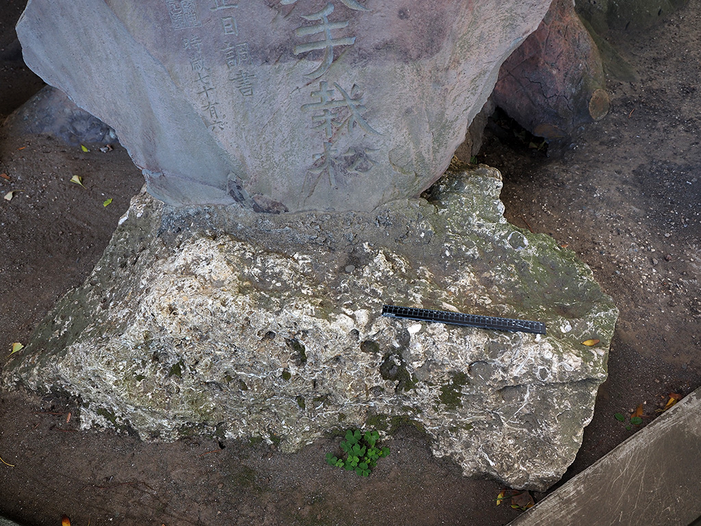 聖徳皇太子碑の初声層化石密集層台座石 TOP