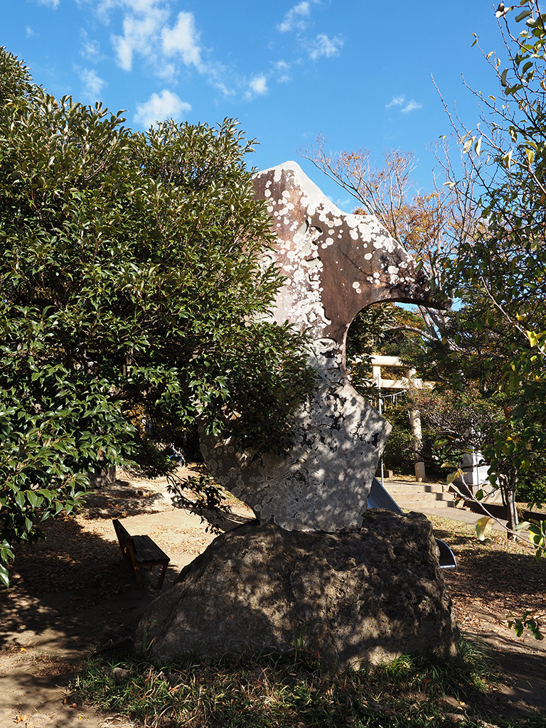 宮田貞明館址碑の初声層化石密集層台座石のミウラニシキガイ化石 TOP