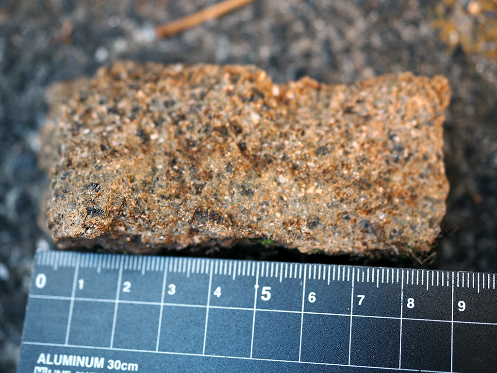 断面の縁辺部には風化層が見られるが3mm程度と薄く脆くなっていない。