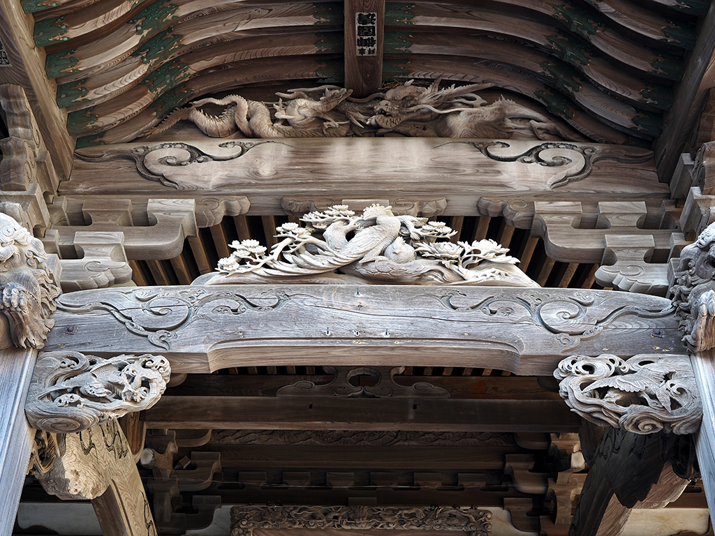 大本堂向拝の龍と鳳凰の彫刻 TOP