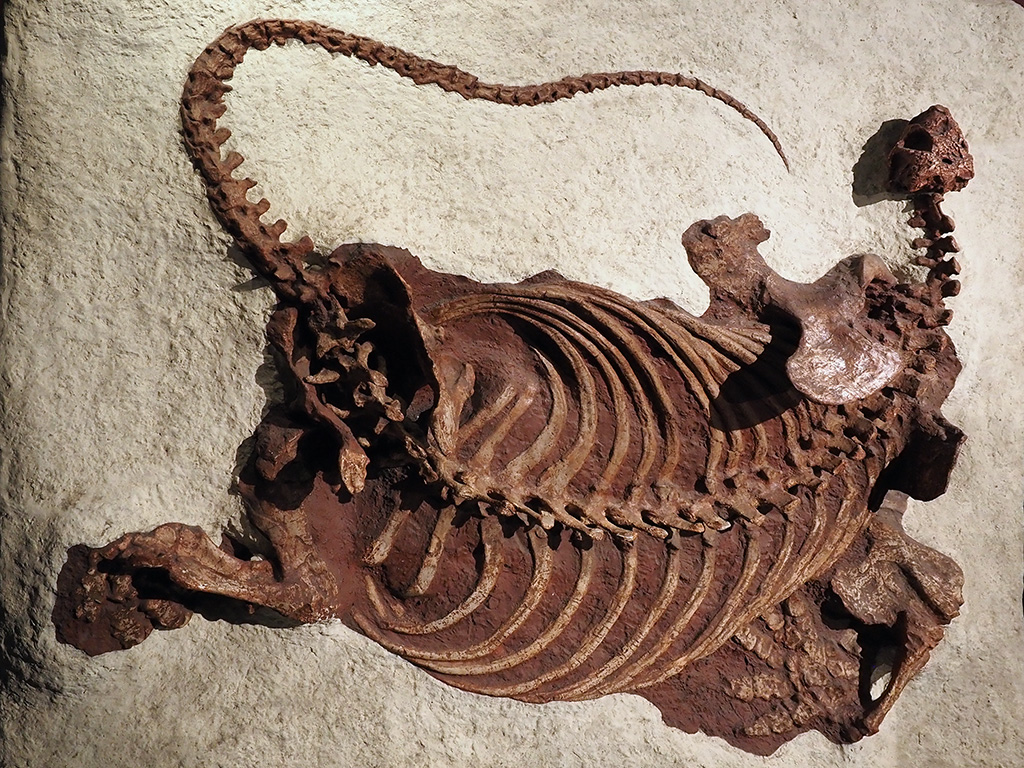 単弓類(哺乳類の祖先を含むグループ。頭部に対して胴体が非常に巨大なのが特徴で、全長は4メートル前後に達する。